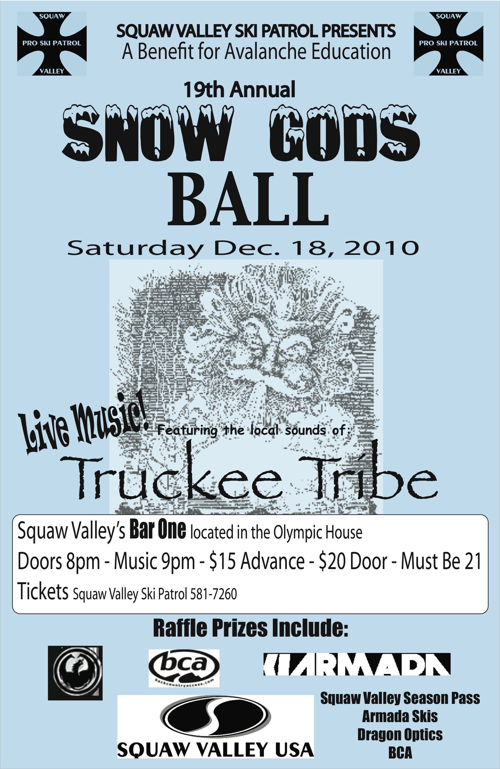 Saturday Dec 18 – Snow Gods Ball. Squaw Valley. $15 advanced, $20 at door. Truckee Tribe will be playing and these guys rock it. Again, there will be girls there and everything. The Southies are here humans, get out there and ask one to the dance “Quieres salir conmigo este sabado para una fiesta de nieve y cocaina? Si o Si!?”  Use that line and you’re IN.