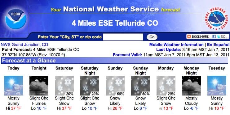 Looks like there is a good chance of some snow latter in the weekend and a cold front coming in with it. Should be cold for a good part of the week with some nice weather. The biggest event this week is definitely the Ouray Ice Festival going on through the weekend. This is the 16th year of the fest and should be a great time. The reggae continues with The Llama bringing some solid bands tonight and tomorrow, after JBB threw down last night. Great stuff!