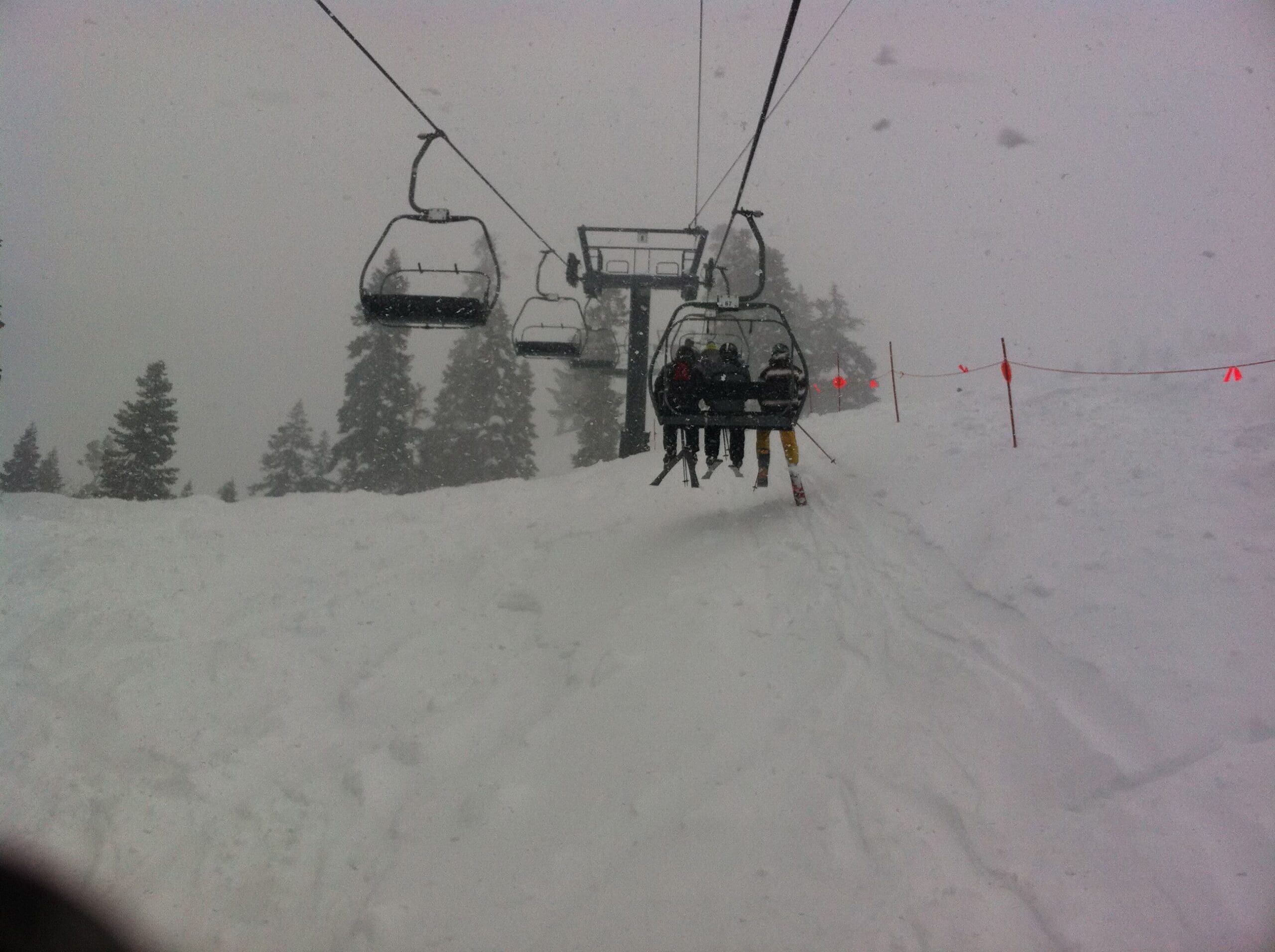 That same wind caused white-out conditions most all of the day today and left the Cable Car stuck and dangling right in front of Tram Face swinging out of control with people on it. Apparently there was a major malfunction on the Cable Car, but they fixed it and got everyone off safely. Squaw has the Cable Car on “maintenance hold” for tomorrow. More details will be forthcoming.