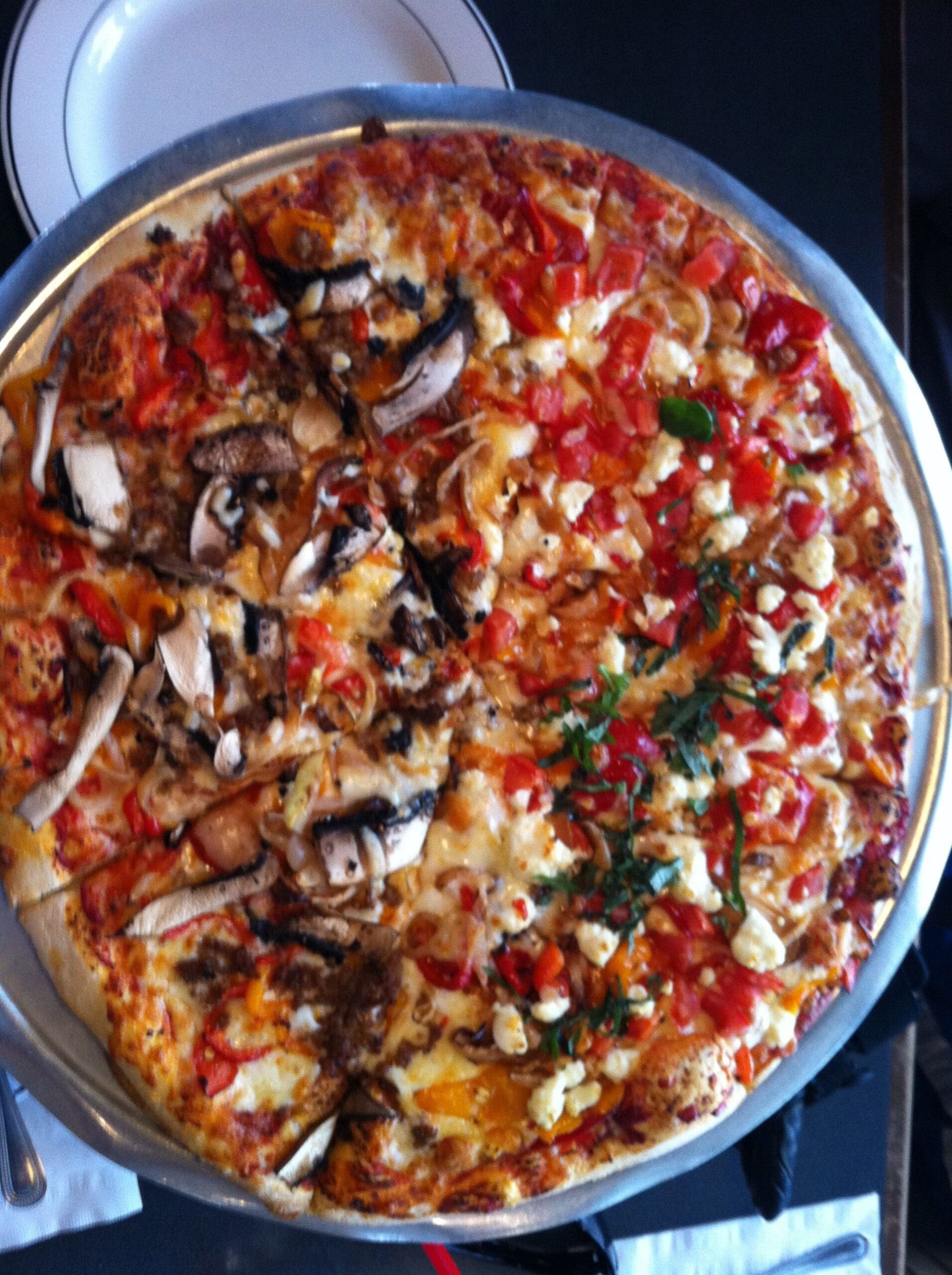 The Atmosphere is Tahoe chic with an urban-style exposed-piping ceiling. Big screen TVs all over play the favorite sports game of the day. There is also a bar where you can chill and watch pizzas being hand made.