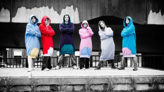 “It started as a joke due to all the tall-tee kids in Whistler,” says Thuggie creator Bryan Pudney. “I decided to sew four obnoxiously bright giant hoodies for my buddy’s birthday to wear spring skiing in 2009. We got swarmed by people wanting to buy them. My friend and now business partner Kim [came up with the] name: the Thuggie. It combines the absurdity of the Snuggie with the idiotic notion that wearing super long tee’s somehow makes you gangster.”
