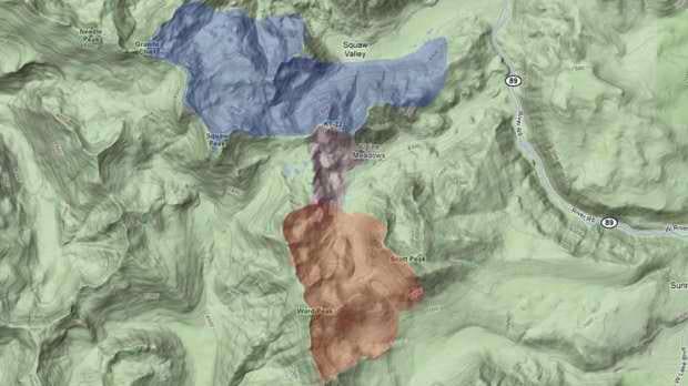 powdork.com brings us this “rough estimate of the pieces of the puzzle. squaw=blue, whitewolf=purple, alpine=red”.