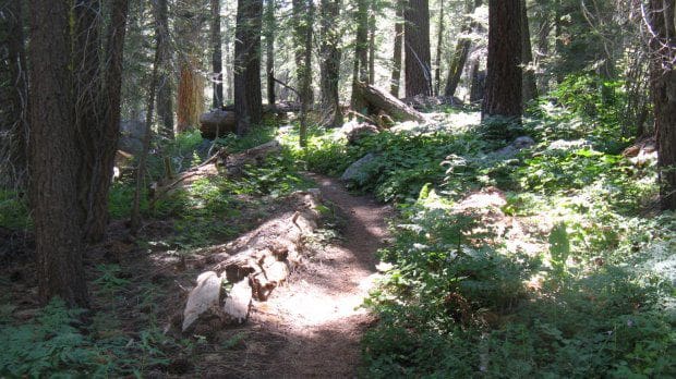 If you stray away from General Creek because it’s generally too flat in the beginning, here’s where the more technical riding is found. There’s still a good deal of x-country terrain, but there’s also a few sections that are steep, loose, narrow and rocky. Once you cross the creek, keep riding (good luck on this short but ridiculous section!) for less than a mile until you come to a sign. Left is towards Lost lake, and the other option will end up taking you out to the Rubicon Trail. Currently, the latter is absolutely beaming with wildflowers, surprisingly going off so late in the season, so much so that they are walling-in certain parts of the singletrack.