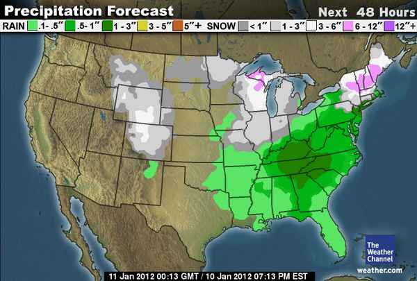 Here is the total precip map from the GFS forecast model through this Saturday which only shows the weak storm from today.