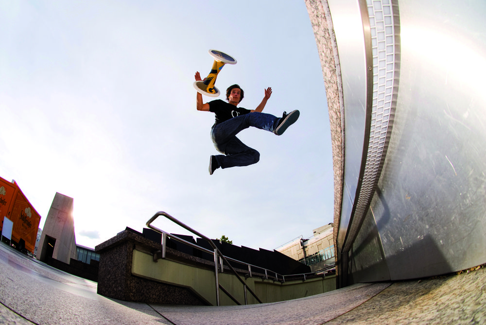 It’s like freestyle walking meets Germany, then skateboarding with some fruit-booting (rollerblading) thrown in and a splash of Razor scootering and capped off with extreme sitting. They just call it Hockern though. Wunderbar! The Landschutz brothers invented the Salzig Sporthocker and brought it to ISPO to gain some exposure in the sporting world. Your impressions of Hockern?