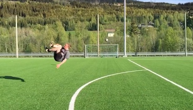 Check out Norwegian freeskier, Øystein Bråten, stick this sweet ski inspired off axis spinning free kick. You think you know anyone who could put this down?