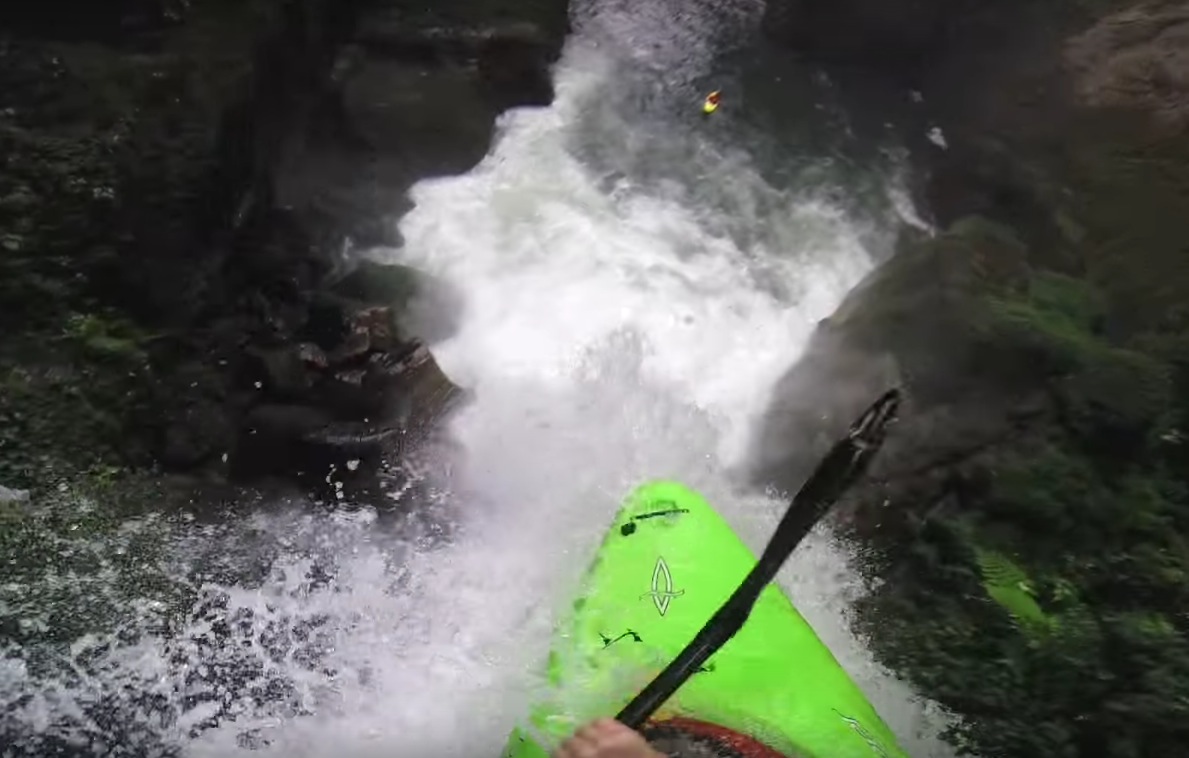 Impressive drop by Edward Muggridge on the Rio Jalacigno in Mexico. A 60ft cliff jump right around the height where even brave people have second thoughts, so doing it in a kayak takes some major stones.