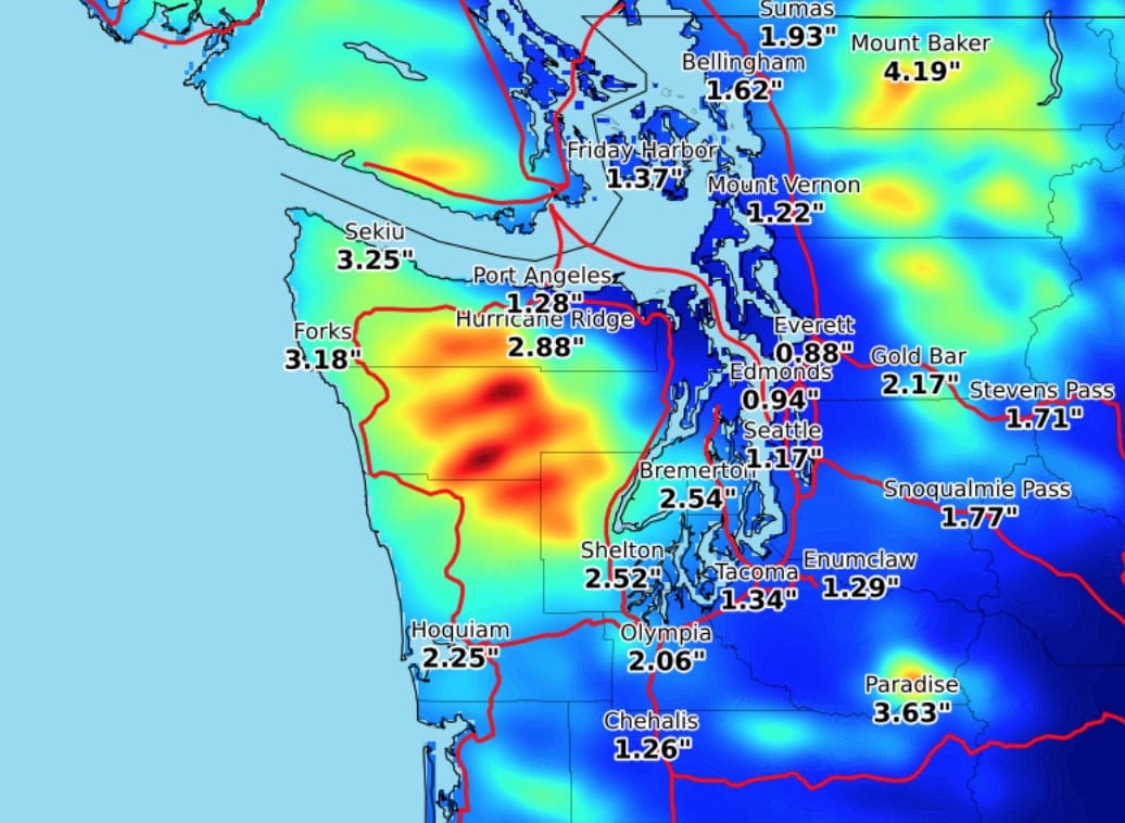All this moisture is also set to impact the mountains where Mount Baker and Mount Rainier should both see over 10 FEET of new snow near their summits.