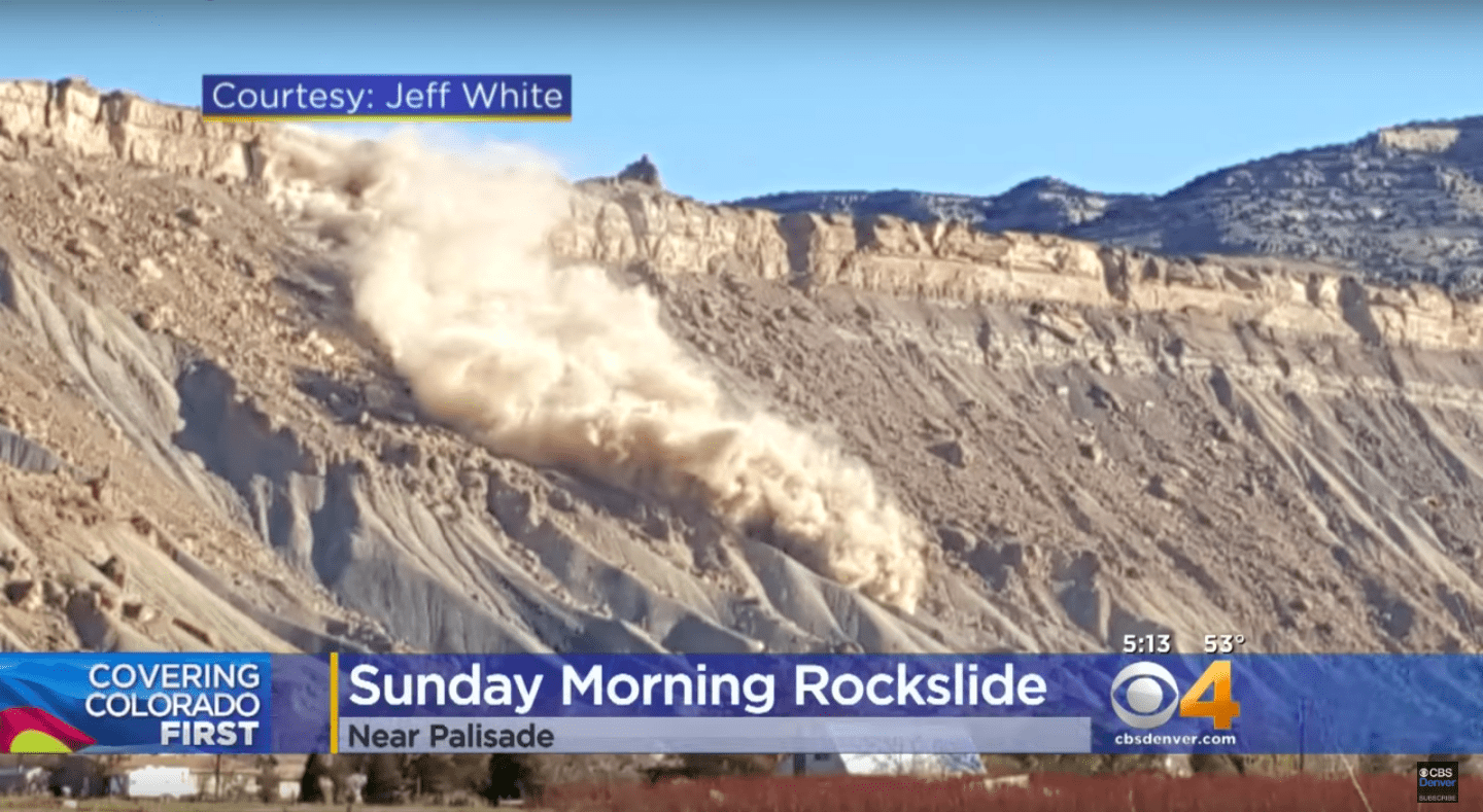 A major rockslide on the Bookcliffs in Mesa Country, Colorado was caught on camera by Jeff White on Sunday. CBS Denver reports he was about 2 miles from the slide when he first heard what sounded like a giant explosion. He then pulled out his camera and snapped the sequence.