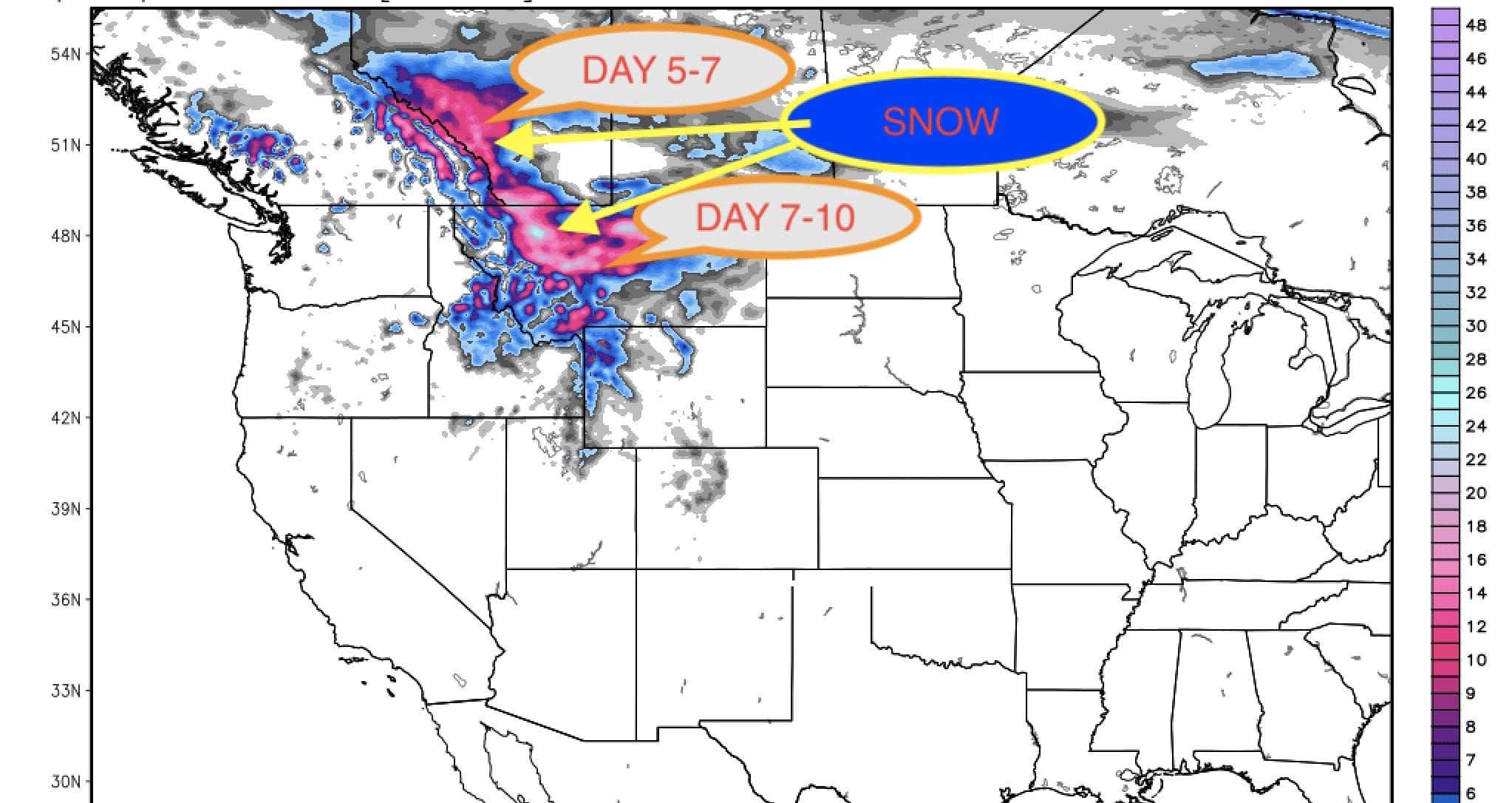 The 10 day forecast is calling for snow in Montana, Wyoming, and Canada but don’t be surprised if you see dustings in California, Idaho, and Oregon as well. Montana residents could see upwards of a foot by Friday morning at high elevations. WOOHOO!