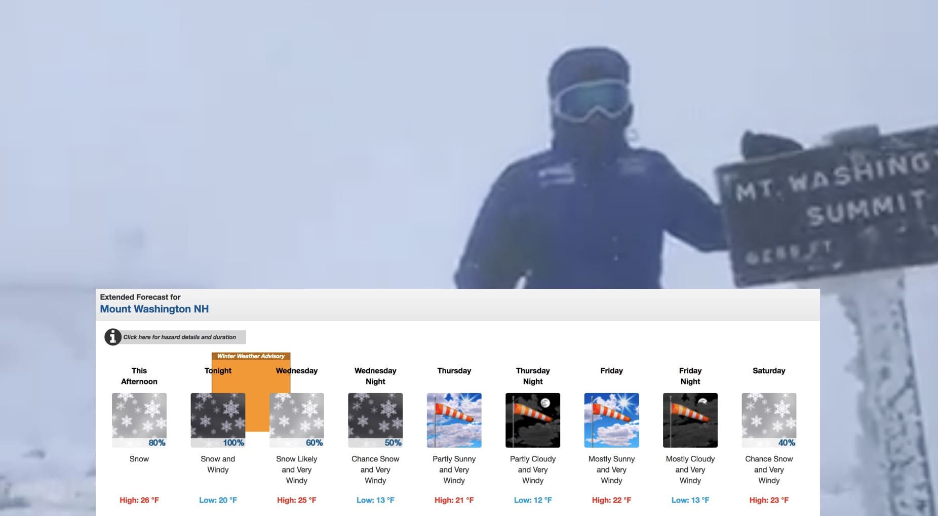 Moderate to heavy snow is currently falling on the summit of Mt Washington, with 6-12″ of new snow expected by tomorrow. What a start to the snow season!
