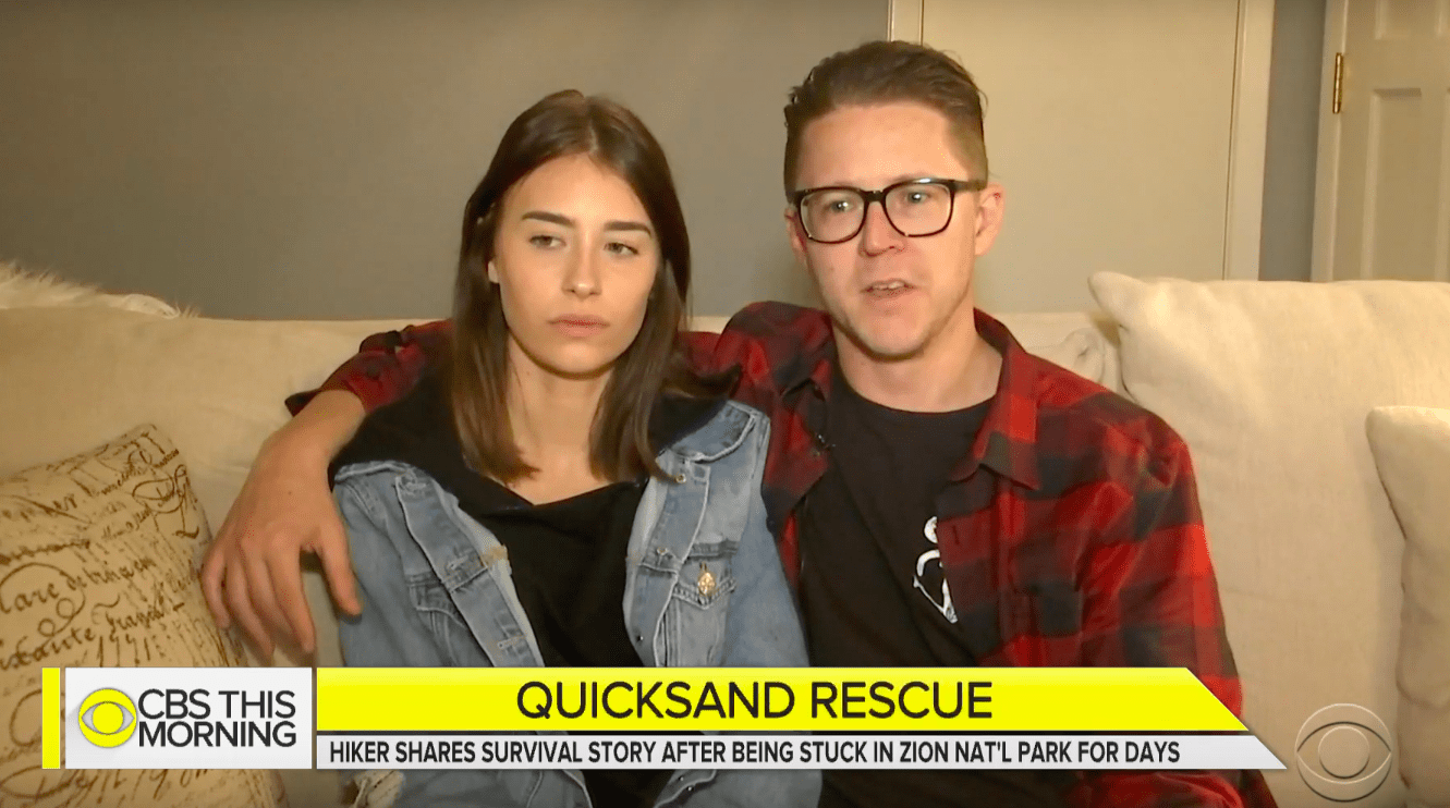 34 year old Ryan Osmunm and his girlfriend, Jessica McNeil, were hiking along in Zion National Park in Utah when Osmunm’s leg got caught in quicksand. They were approximately 3 hours hike from the trailhead on a trail called the Subway Route. His girlfriend was unable to free him and with no reception on her cellphone, decided to leave Osmunm to hike back to call 911: