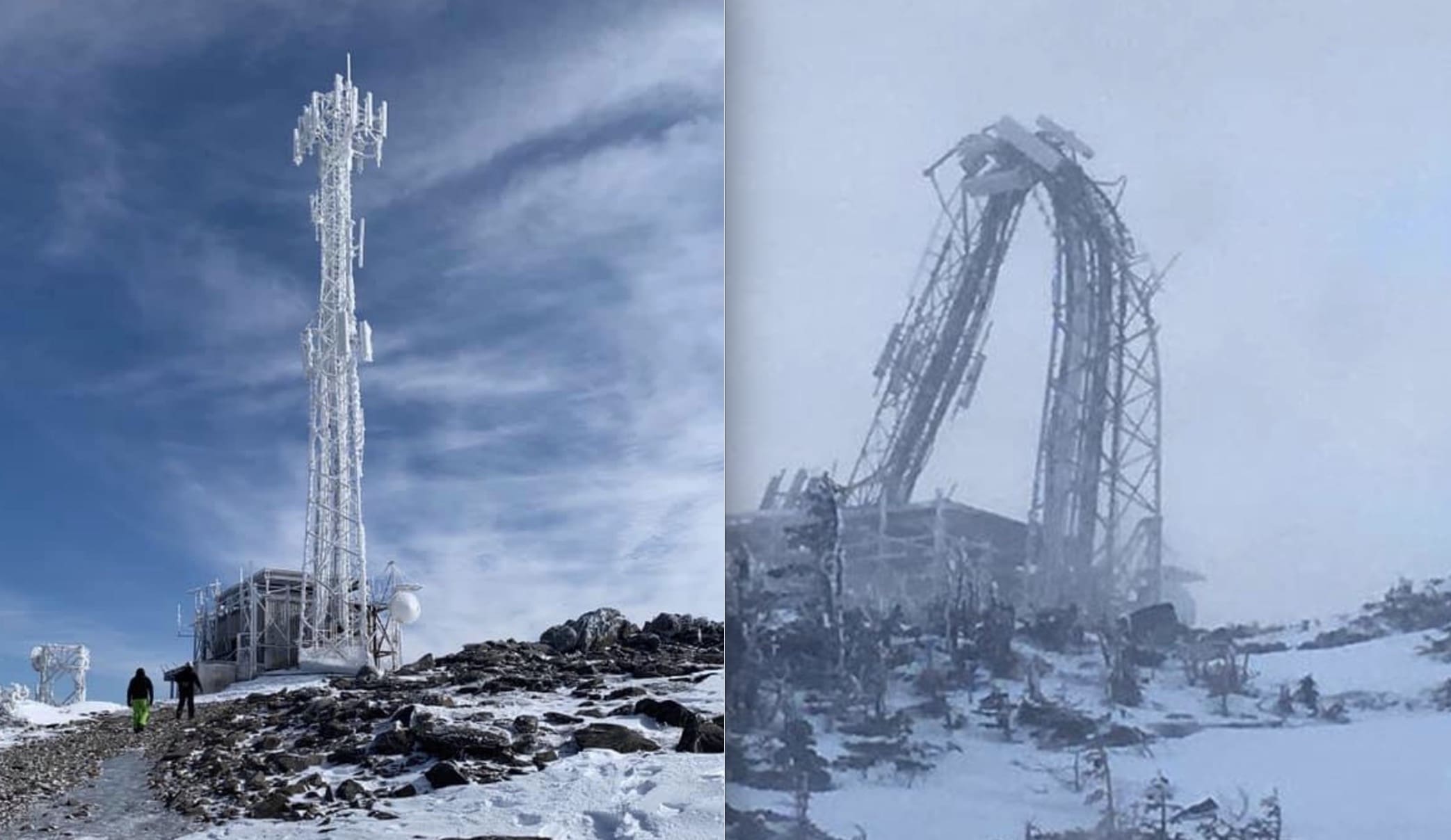 “It’s been a pretty wild day on top of the mountain today, to say the least. A lot of you have probably seen these images going around this evening and we can confirm they’re real. This tower was blown over in a gust of wind earlier today.