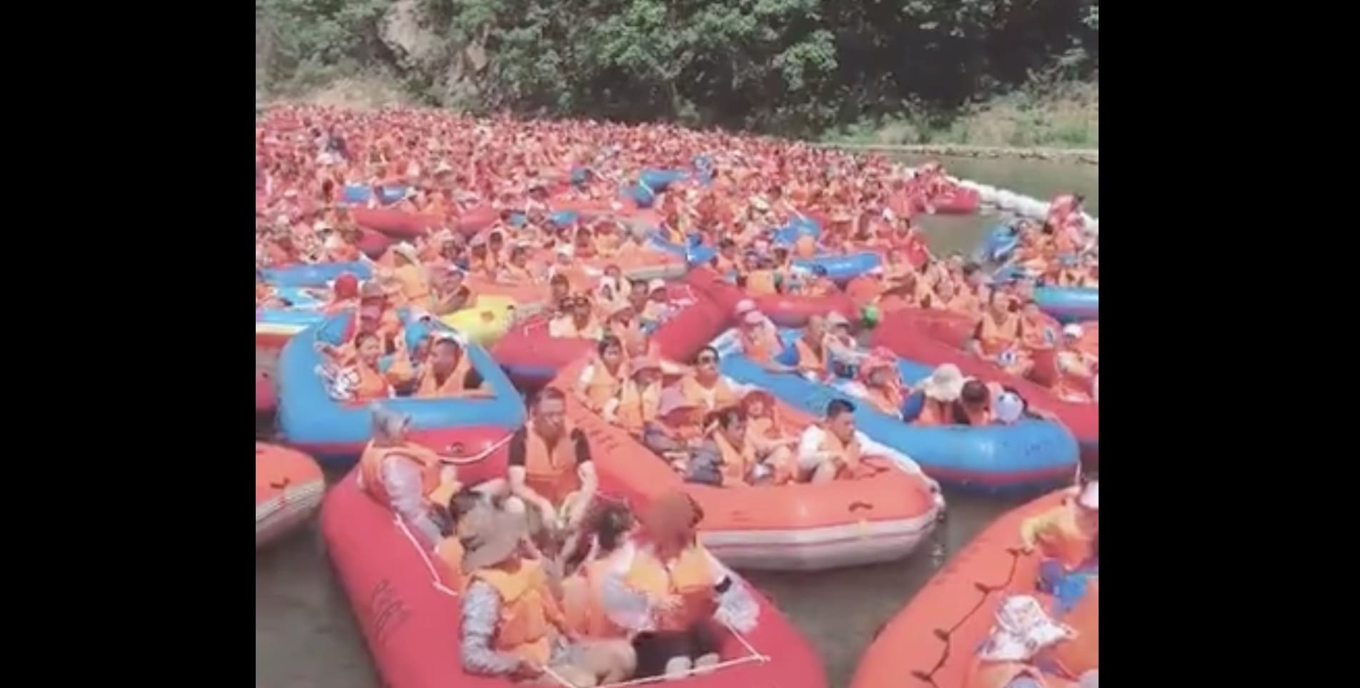 If you think that floating the Truckee on a holiday weekend is bad, check out this video of a river run in China that is packed to the gills with rafters. This river is even more packed than the “tsunami pool” in northeast China we posted about last week. I mean you can’t even see where the backup ends.