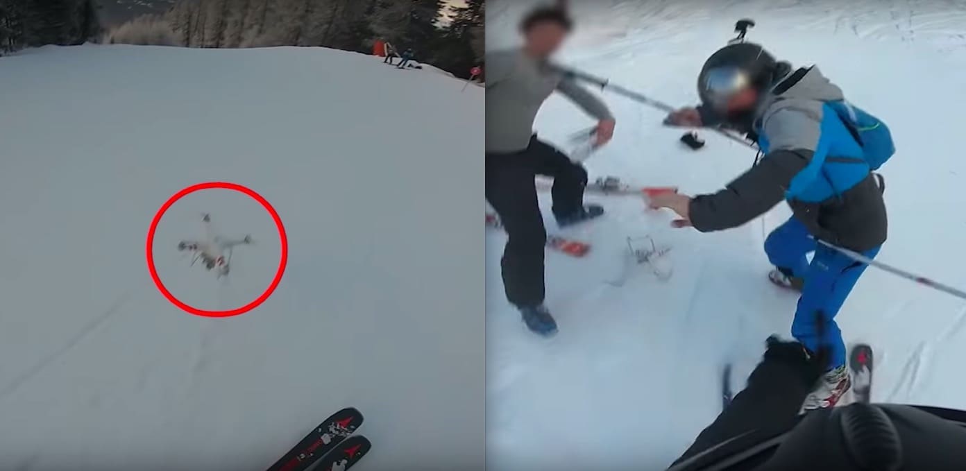 While we may write the above video off as staged, it brings to mind the time Marcel Hirscher nearly got smashed by a heavy-duty broadcast drone at Madonna di Campiglio Slalom race in 2016. This shit was all too real and why drones are no longer permitted above race courses: