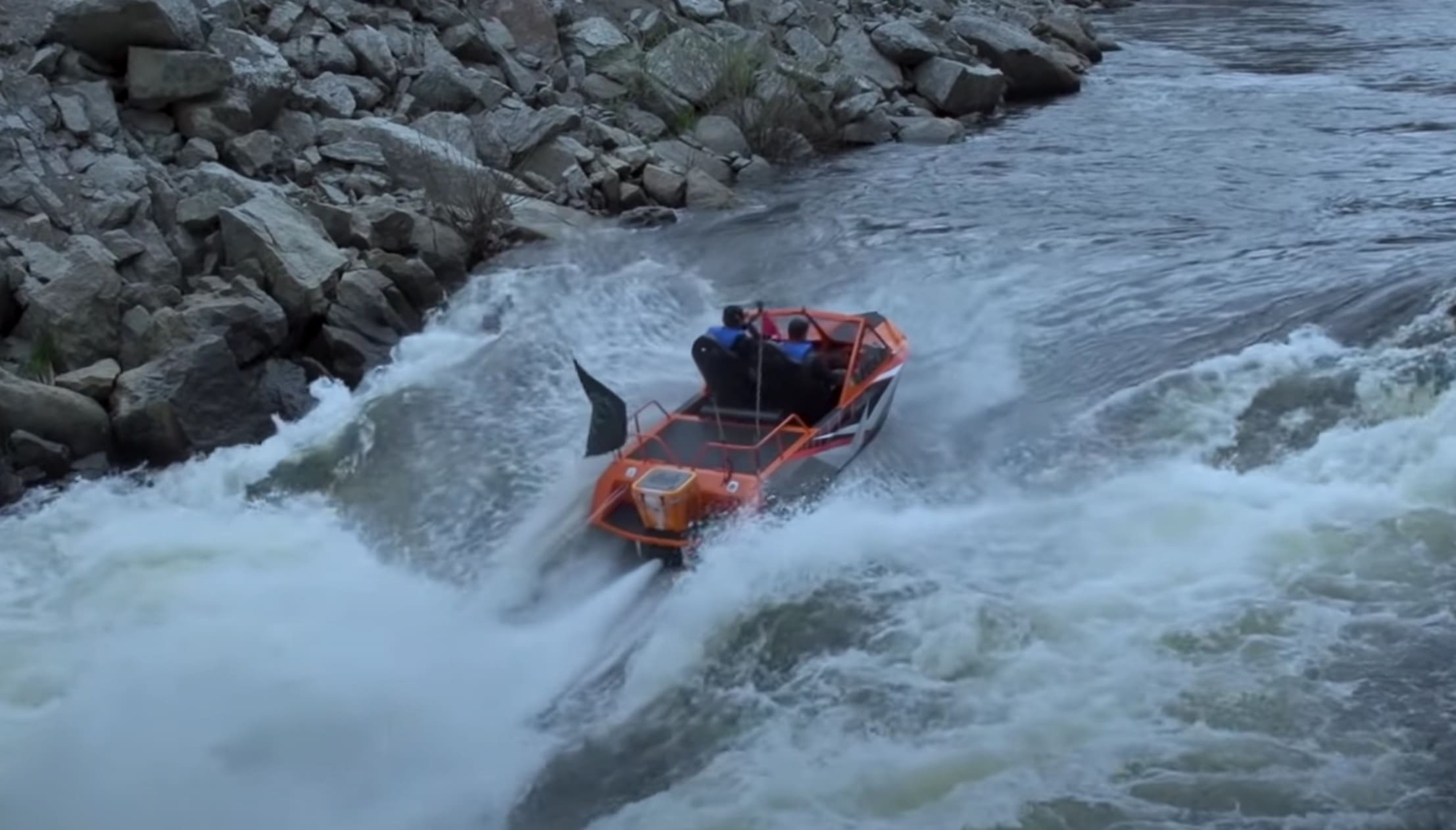 We’ve covered these mini jet boats equipped with supercharged jet ski engines and reinforced aluminum hulls blasting through slot canyons in the southwest but now they’ve popped up in the turbulent waterways of Idaho’s backcountry. Hard to argue the utility of these little buggers as they can run smoothly in inches of water and have no problem bumping up and over obstacles.ย So fun.