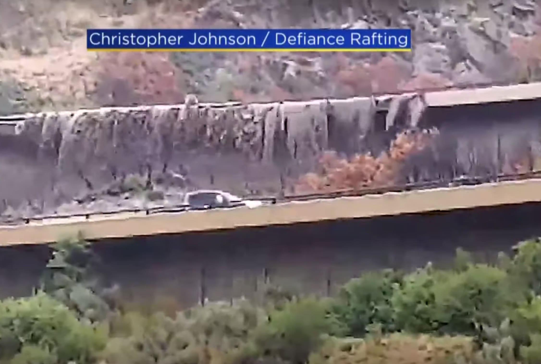 Gnarly scene of mud starting to cascade down Glenwood Canyon, over I-70 recorded by a rafter on the Colorado River. Christopher Johnson and group of boaters group watched Sunday as the relentless rain washed mud and debris onto Interstate 70 while drivers were still traveling through. The interstate was eventually closed in both directions for about 25 hours. Sunday’s main mudslide reached 80 feet wide and 5 feet deep in areas. On Saturday, the mud spread 70 feet wide and was 5 feet deep in places. Saturday’s highway closure lasted several hours. Thankfully no injuries have been reported due to the mudslides. What a thing to see while cruising by on a raft: