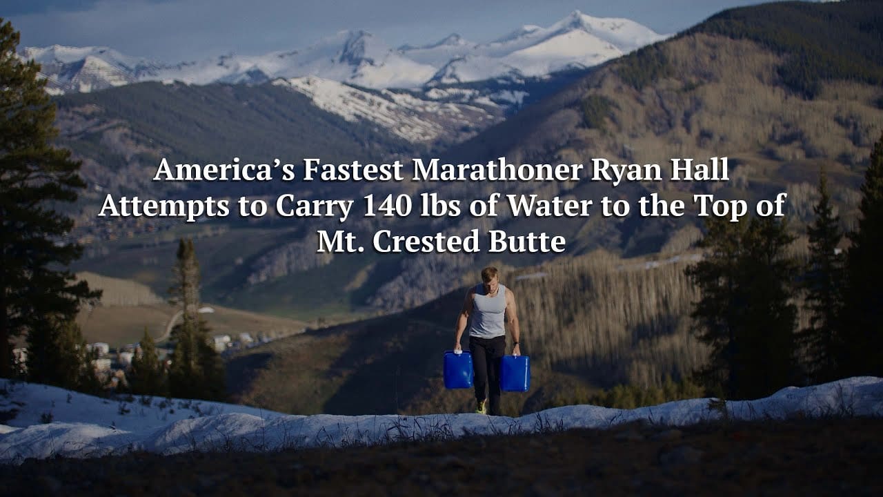 If you enjoy watching endurance suffer-fests, crack your knuckles and press play as Ryan Hall, who holds the record for fastest marathon (2:04:58) & half marathon (59:43) in US History) attempts to farmer carry two 70lbs water jugs upย Mt. Crested Butte. This is badass: