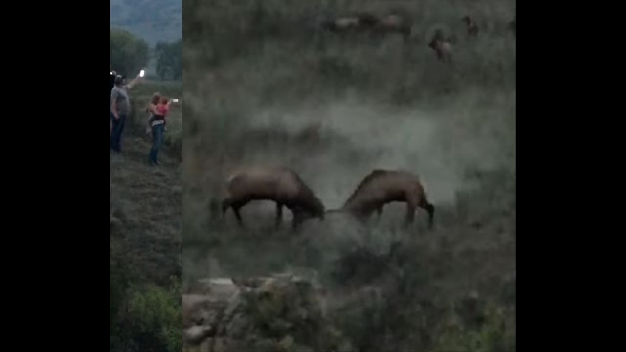 A group of tourists were given a show the other night when two bull elk had a little tussle as the sun was setting. It’s unclear if this was an actual fight, or just two young males sparring, but it seemed like a pretty aggressive fight to me.