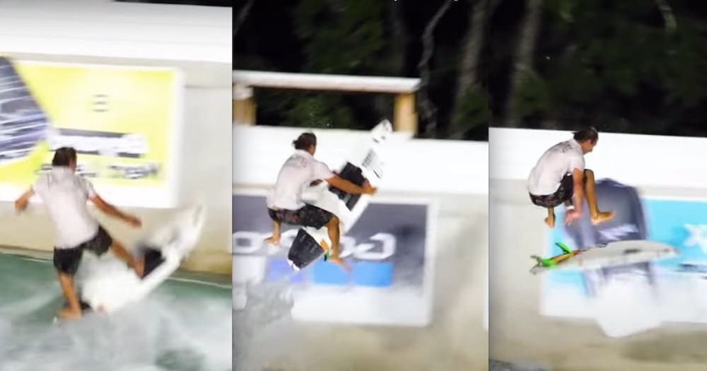 Hats off toย Jacob โZekeโ Szekelyย for landing the worldโs first SuperMan Air FingerFlip on a Surfboard at BSR Surf Resort in Waco, Texas. This is straight-up out of a video game: