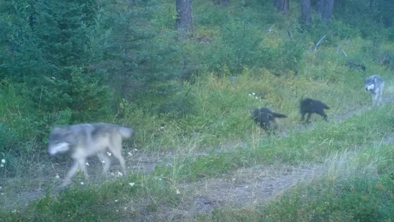 A perfectly placed trail cam can capture some awesome wildlife encounters. For example, an entire wolf pack strolling down a road in Northwest Montana, pups and all.