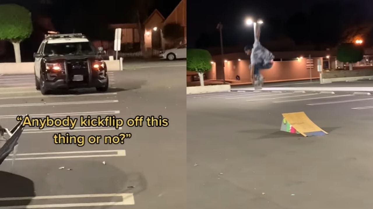 Instead of some power-tripped-out cops shutting down kids from having some harmless fun, these officers cheered on as a few skaters sessioned a ramp in the middle of a parking lot.