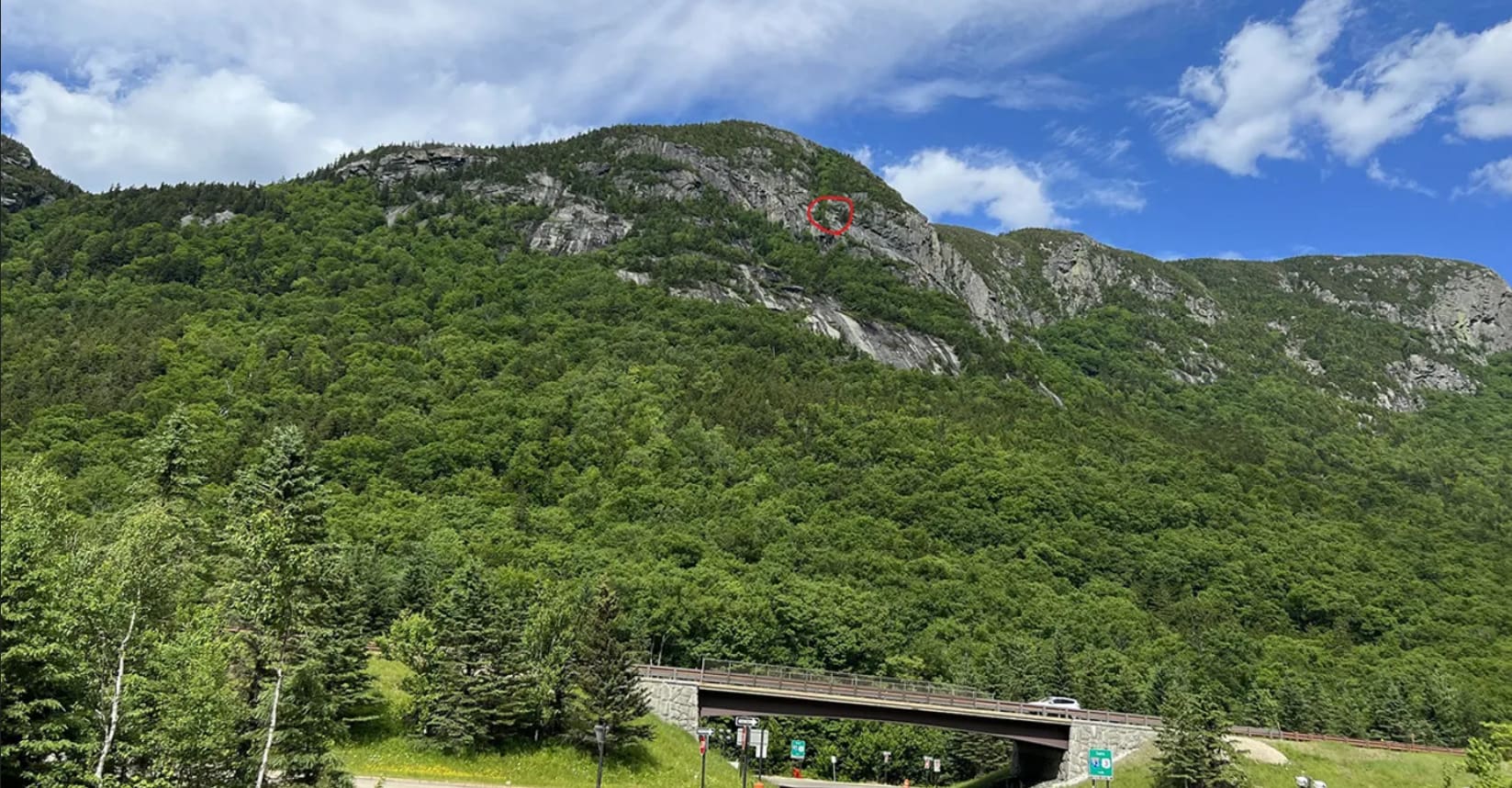 Through 911 tracking, the hiker was determined to be on the east side of Franconia Notch State Park, on a feature known as Hounds Hump, near the Eaglet. The hiker had been with a friend, both of whom had not followed a trail, but started climbing the steep ledges. The hiker told dispatchers, ‘We were exploring.’ The friend had been able to continue ascending, but eventually called for help because he too could not find a way down from the cliffs.”