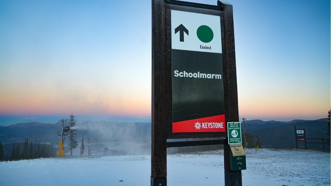 Keystone has shared a new series of photos and a video showing snowmaking guns blasting up and down their most famous beginner run- Schoolmarm.