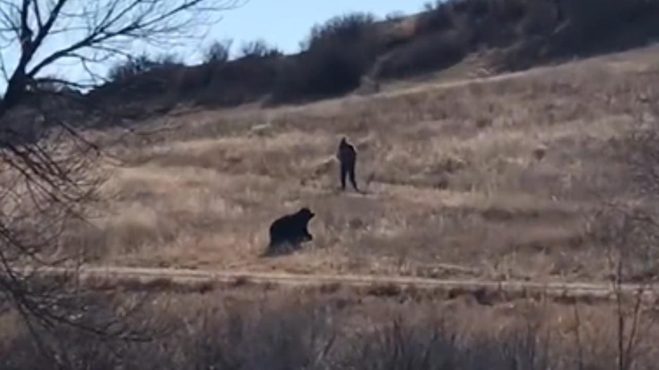 Kevin Vaughan, a reported for Denver’s 9News posted a video to Twitter of the bears running across the course. Check it out below: