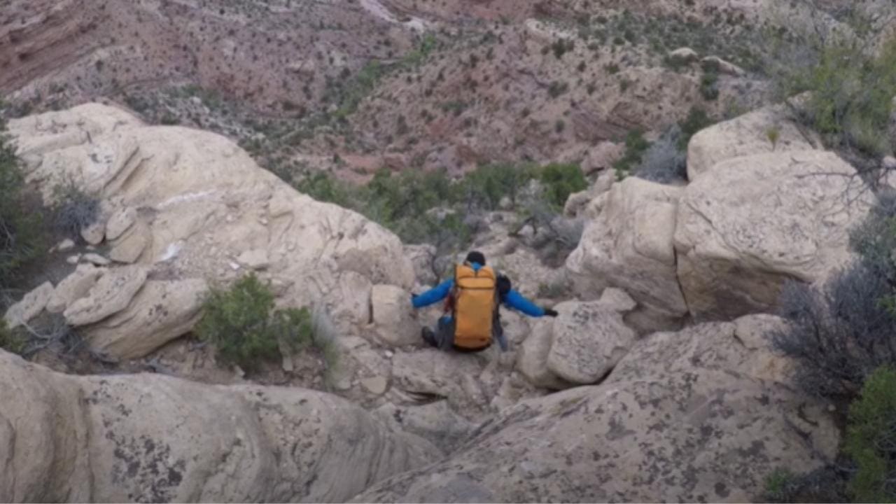 They were on a backpacking trip through Gypsum Canyon, California back in April, and decided to whip out a camera to film a tricky descent through some rocks.