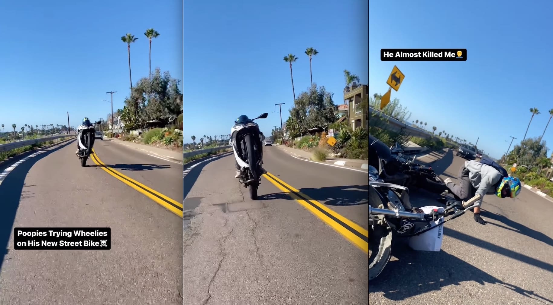 “Poopies asked me to get a clip of him wheeling his new street bike, then this happened haha.” –Jacob Szekely