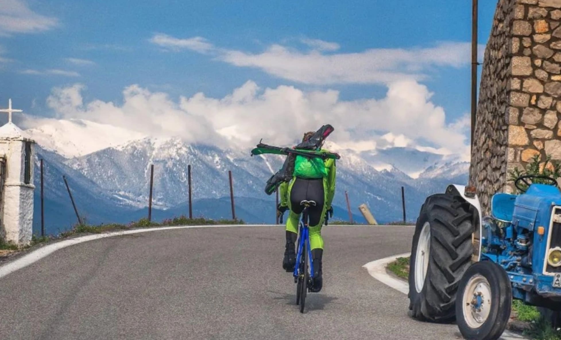 Incredible bike to ski adventures in Greece withย DYNAFITย Managing Director and adventure athleteย Benedikt Bรถhm. Last March Benedikt set out on a 5-hour sea-to-summit expedition to conquer Mount Parnassos. Starting out at sea level in the village of Itea, he gained altitude while pedaling through beautiful Greek mountain villages full of olive, lemon and orange tree plants before reaching the old ancient ruins of Delphi. Eventually he hit snow and switched to skis to complete the summit. If youโre you a cyclist who loves to ski or vice versa, this an absolute dream. So cool: