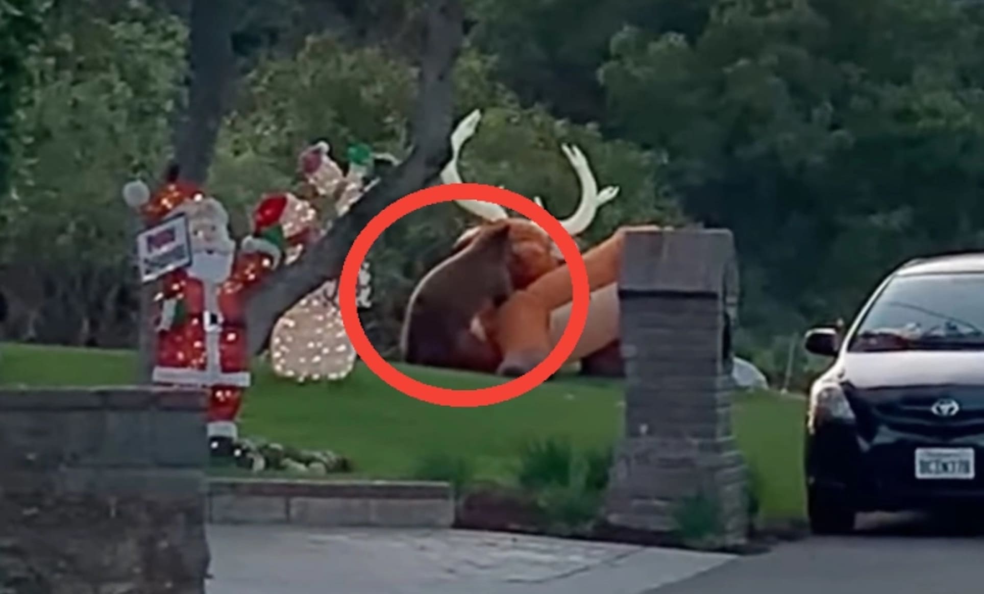 VIDEO: Bear Attacks Giant Inflatable Rudolph Lawn Decoration