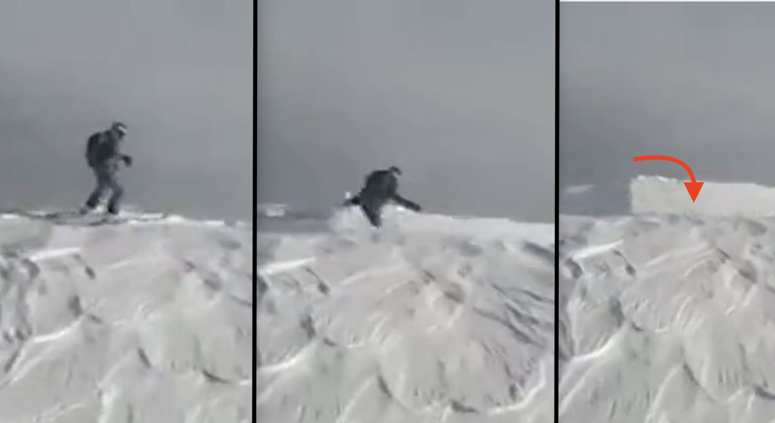 This video is a good reminder to always be cautious around cornices, particularly in strong winds when unstable cornices might have formed.