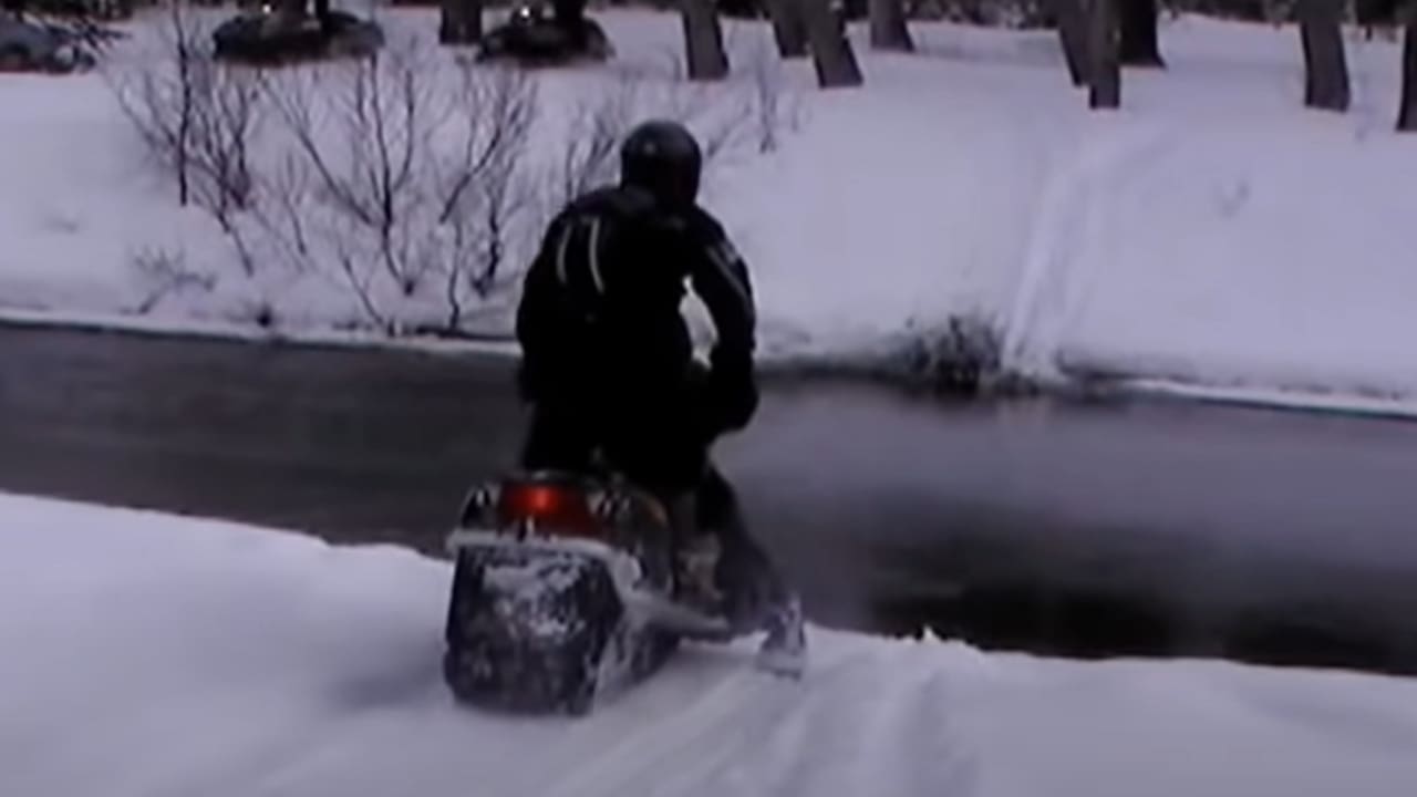 Anyways, the video below shows a snowmobiler attempting to cross a moving stream.
