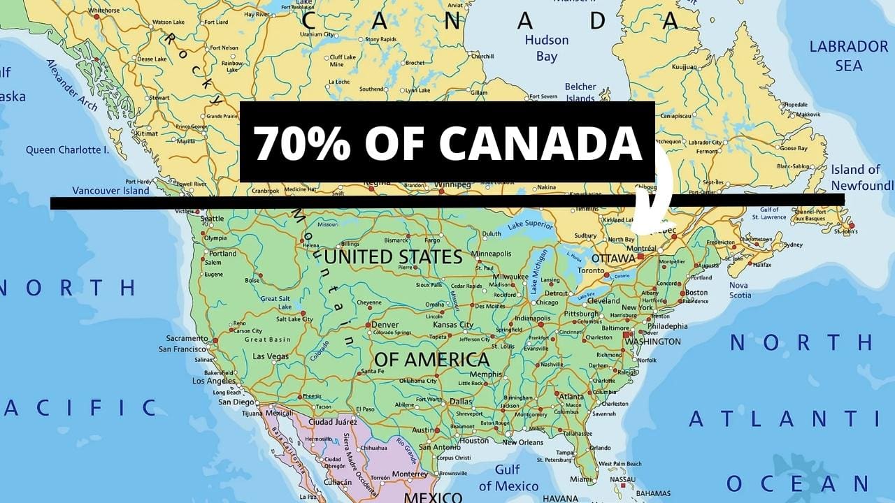 What’s evenย weirder is that nearly 70% of Canada’s total population lives south of the 49th Parallel, the line that separates the western US from Canada.