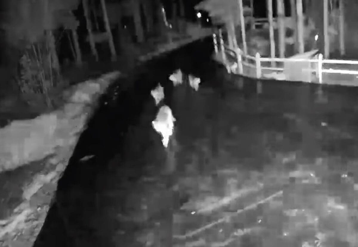 Chilling video captured by a Ring Floodlight Cam in Breckenridge, Colorado where a pack of mountain lions casually strolled up a driveway.
