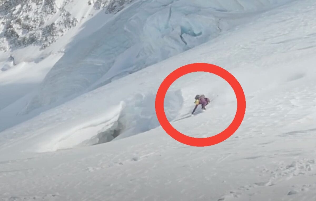 Shocking footage from the slopes of La Grave, France where a skier falls directly into a crevasse. Thankfully the man in his 40s was okay and was able to ski under his own power to the base. The folks at Les Powtos wanted to use it as an example that even skiers familiar with terrain can momentarily lose their way and end up in precarious situations.ย Moral of the story, if you’re skiing in areas with crevasses, be on high alert at all times: