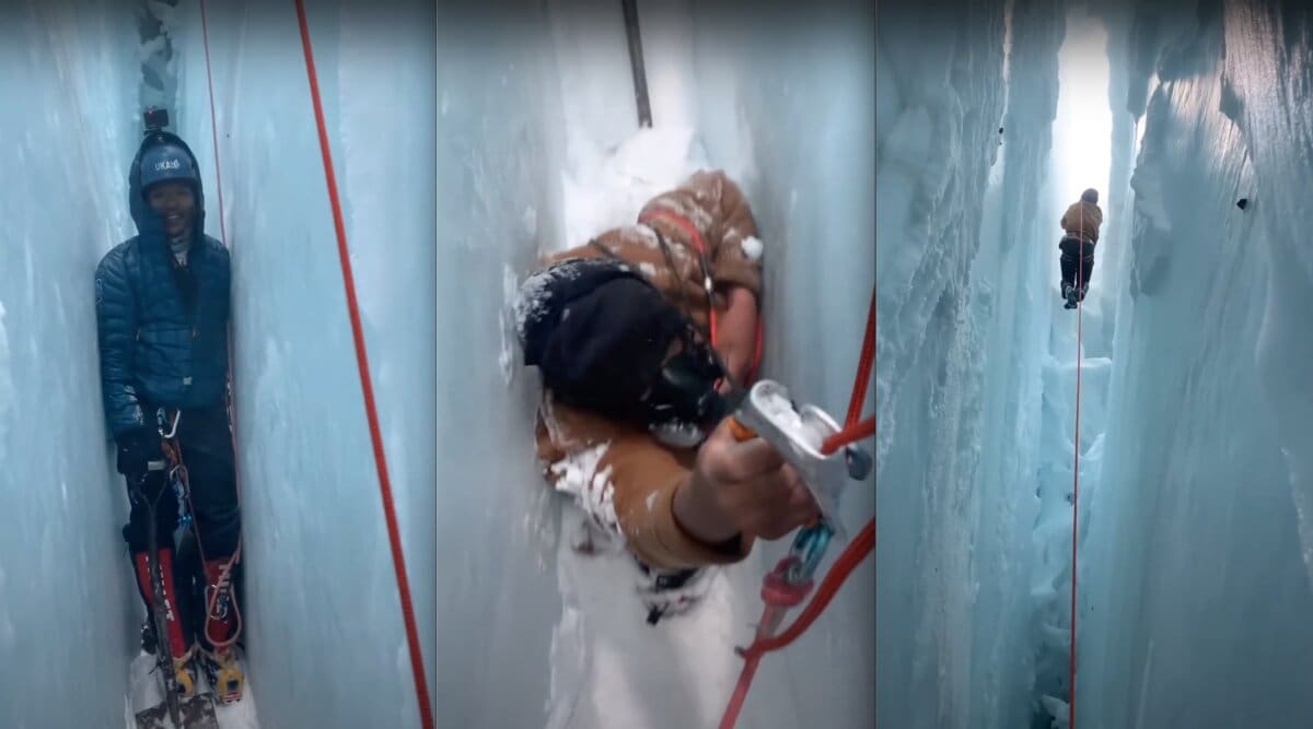 Not sure how far this climber fell before getting wedged tight between two walls of ice but its looks significant. Once again we have the incredible work of the Sherpas to thank for this rescue from a crevasse on Everest between Camp 1 and Camp 2.ย It cannot be understated how crucial Sherpas are to the safety of people attempting to climb the world’s highest mountain. They are superheroes.