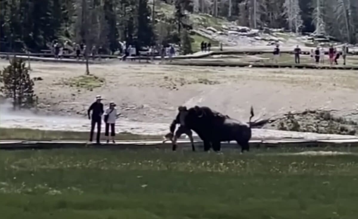 One particular incident unfolded in Yellowstone National Park, where a group of tourists found themselves in a perilous situation due to their inadvertent proximity to a Bison. With its massive frame and powerful presence, the Bison felt threatened and charged towards the tourists, comprising two adults and a child. Fortunately, in a display of bravery and quick thinking, one individual lifted the young child out of harm’s way, capturing the heart-stopping moment on video.