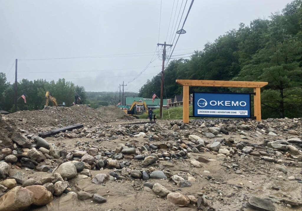 Over at Okemo Mountain Resort, water went through the Clock Tower Base Area, with water getting inside the buildings. Sammy reported today that the buildings had suffered minor damage from the flooding. Floods are also happening on the ski trails, which will likely lead to erosion issues. Today, Okemo announced that its summer activities will remain closed through Thursday, July 27th.