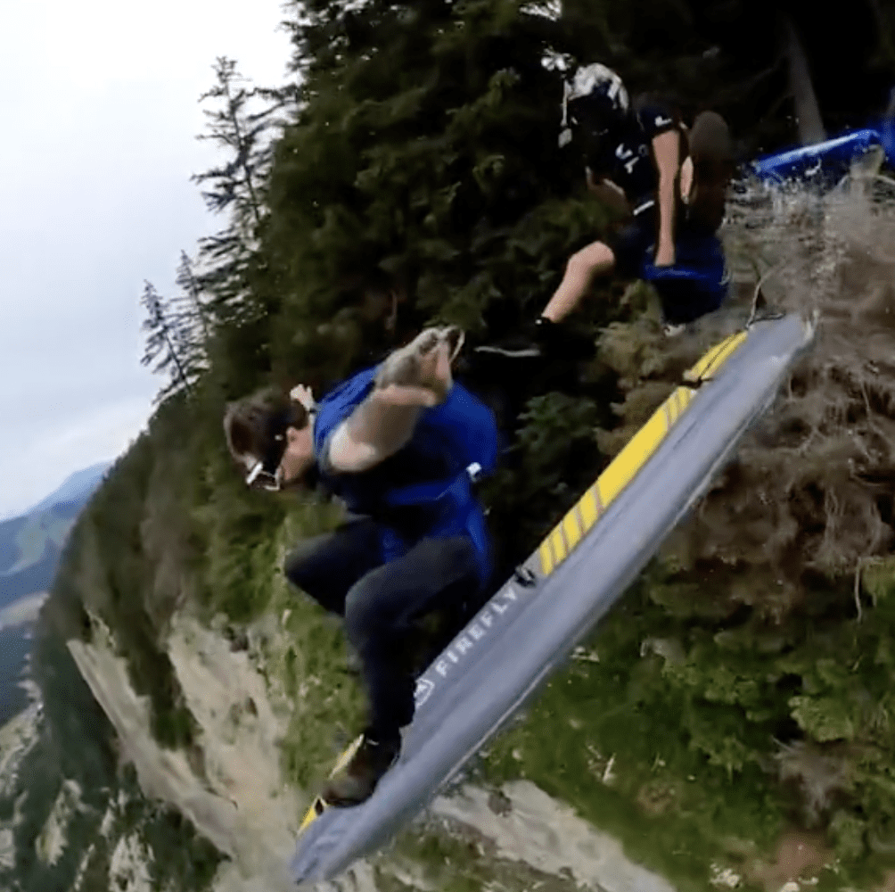 Nail biting clip of a base jumper nearly failing to deploy his parachute in time after a kayak based stunt was posted to TikTok by Daniel Regan in July. It’s unclear exactly how much longer he had to deploy his chute before things would have gone much further south, but he was definitely edging towards disaster.