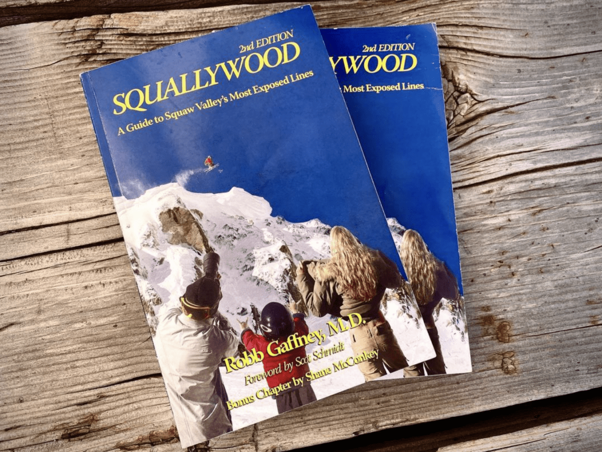 Squallywood: A Guide to Squaw Valley’s Most Exposed Lines was the first book of its kind, documenting and rating over 150 lines across what is now Palisades Tahoe. The bonus chapters, written by the iconic Shane McConkey, along with each line’s rating, gave birth to the game of G.N.A.R., the focus of GNAR The Movie and an endless amount of mountain fun.