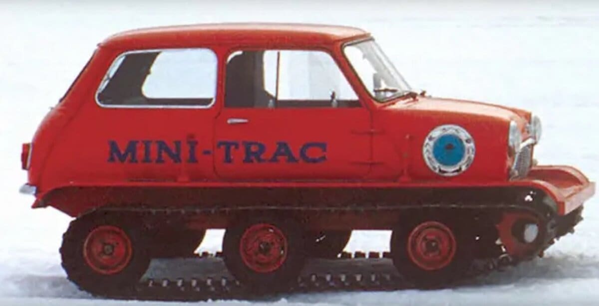 The Mini-Trac was essentially a stock Mini (Mark 1) with the obvious modification of tank style tracks to traverse the snowy landscape skid-steer style. The Australian National Antarctic Research Expedition (ANARE) took it on their trip to the frozen continent but it proved too unreliable for practical application. It was later used in the Victorian Alps of Australia and has since disappeared. Really enjoyed this video, hope you do too: