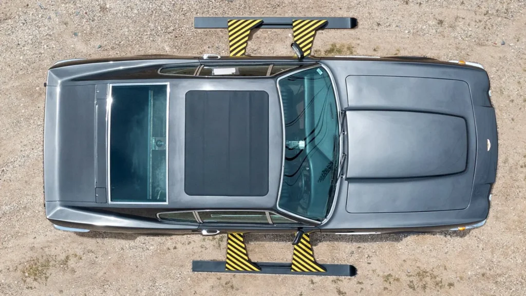 Destined to be driven downhill and into snowbank at the conclusion of the film’s thrilling chase scene, the engine and transmission were removed to lighten the car for the stunt. A faded shipping label still present on one of the car’s windows further confirmed that it was EON Productions’ Car Number 10.