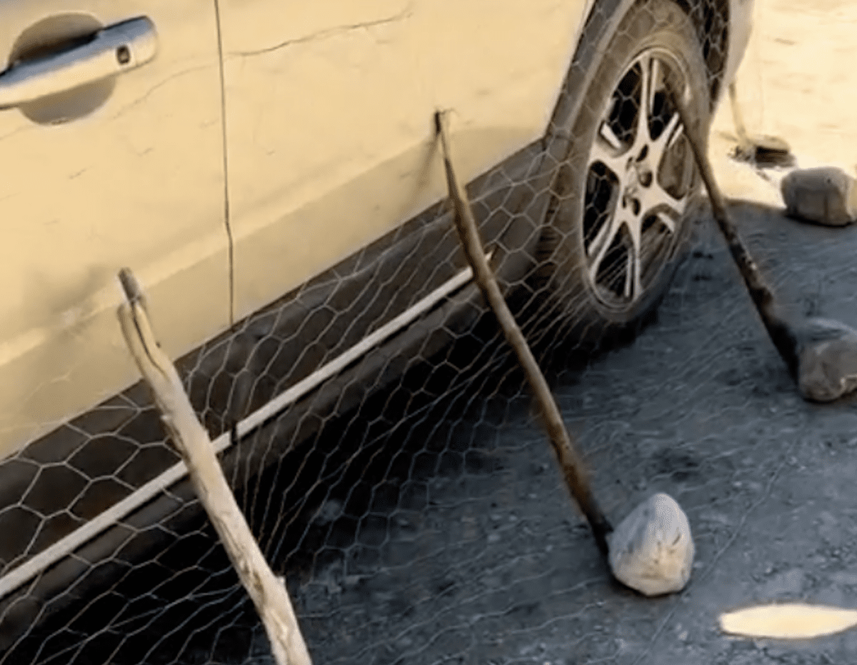 It’s a bit of a bizarre sight, and can certainly be a bit unsettling, but these people aren’t worried about men of the woods climbing under their cars to steal catalytic converters. Instead, they’re trying to keep mischievous critters, like porcupine and marmots, from chewing on the wires, fuel lines, and brake lines underneath their vehicles.