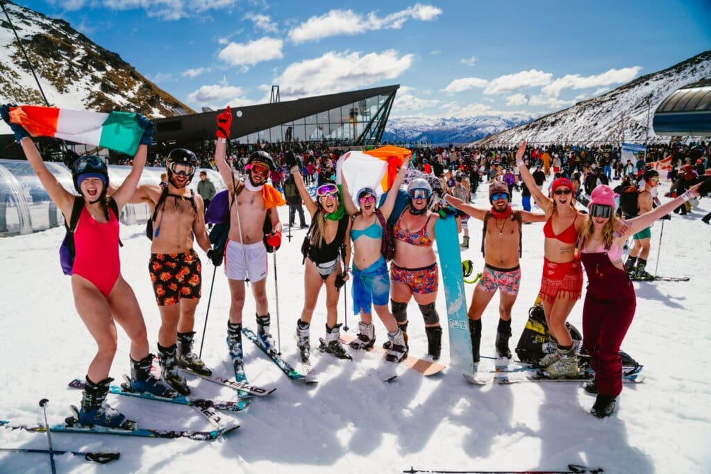 Throngs in thongs…in just the second year of The Polar Bare event at The Remarkables Ski Field in New Zealand a new unofficial record was set for most skiers and snowboarders in swimwear with approximately 1,500 participants (previous record held by Sochi, Russia with 1,200).
