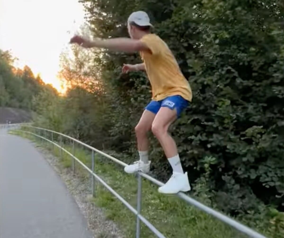 If you grew up in the 90s you may know these as SOAP Shoes but now they go by the generic name Grind Shoes. However you call them, they are basically a wheelless rollerblade used to hit rails. Seems goofy because it was and is but its undeniably entertaining. Pro skier Andri Ragettli got his hands on a pair and immediately set himself an ambitious goal…a massive handrail in Zurich. Andri hit it an incredible 462 times before making it clean. Cowabunga!