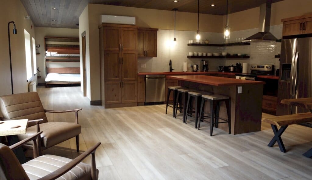Humminbird Lodge & Campground: Over the summer, Whitewater entered the slopeside lodging business. The lodge itself features two-bedroom suites, which include a kitchen, common room, and a deck. I’m super impressed with the design choices in the suites, especially the bunk beds.