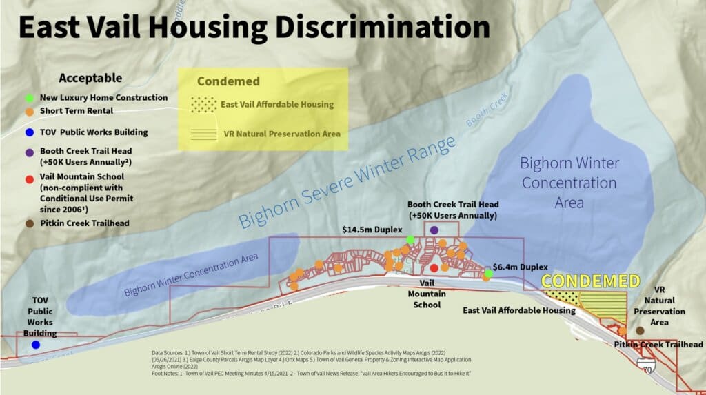 The fuss from the Town of Vail concerned protecting Bighorn Sheep. While bighorn sheep are pretty cool, it should be noted that they aren’t even close to being an endangered species. In fact, their conservation status is of the least concern. Meanwhile, the rich are allowed to build their homes around this condemned area without any issue.
